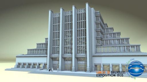 voici ce qui va donner le look final au Grand Palais de Bruxelles 1935, ce fameux assemblage de fenêtres qui nous permet d'apprécier la forme extérieure du Palais !