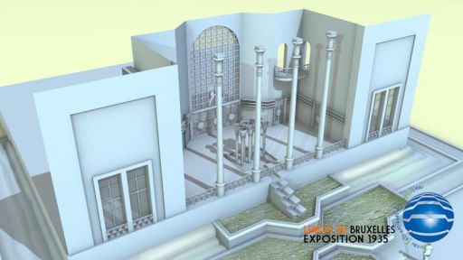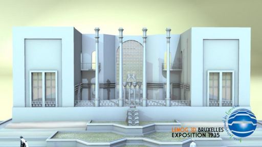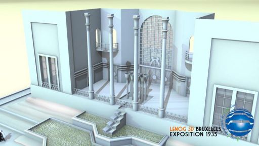 Modélisation de la face arrière du Palais du Commissaire général... elle a beau être à l'arrière, c'est la partie la plus belle de l'édifice, d'ailleurs, j'ai trop peu de références intéressantes de la vraie façade avant pour en faire une reconstitution précise, je ne pense pas la montrer dans le film !