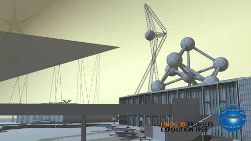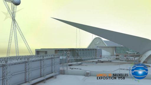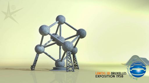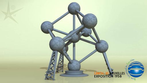 Voici la construction que tout le monde devait attendre, mais qui bien sûr, ne peut pas être le sujet principal du film, puisque c'est un vestige toujours visible de nos jours ! l'Atomium !Je ne suis pas allé jusqu'à représenter et modéliser chacune des petites tôles découpées très précisément. L'Atomium étant en arrière-plan, il est largement assez détaillé pour ce projet.