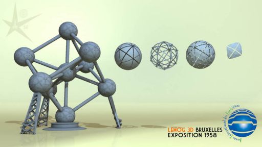 ...en fait, il n'en est rien, car pour bien comprendre et appréhender cette structure, j'ai quand même tout réalisé... c'est seulement que dans le cadre de ce projet de film, où l'Atomium ne sera vu qu'en arrière-plan, il est inutile d'avoir un modèle 3d trop détaillé et trop lourd. C'est donc la version un peu plus simple que j'ai choisi d'y faire figurer.