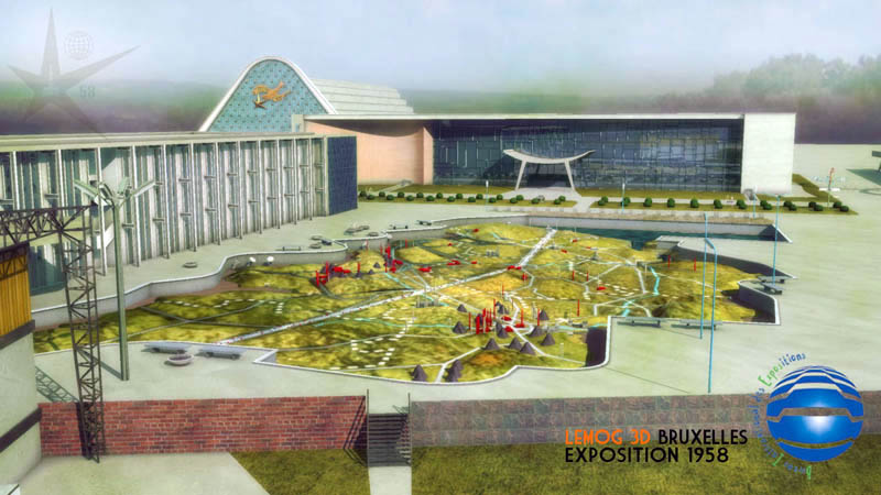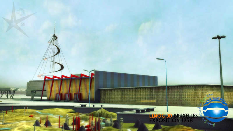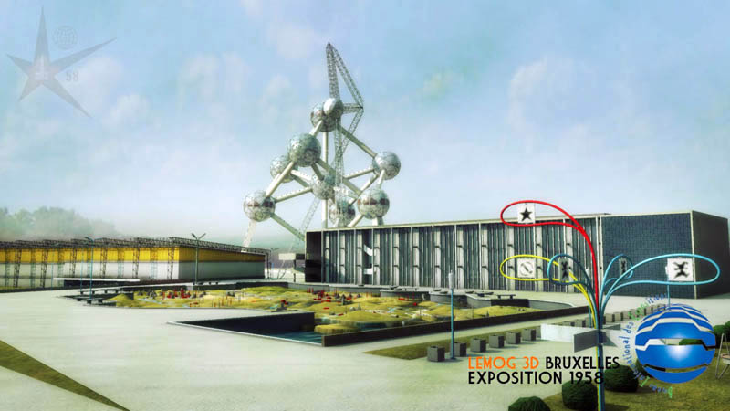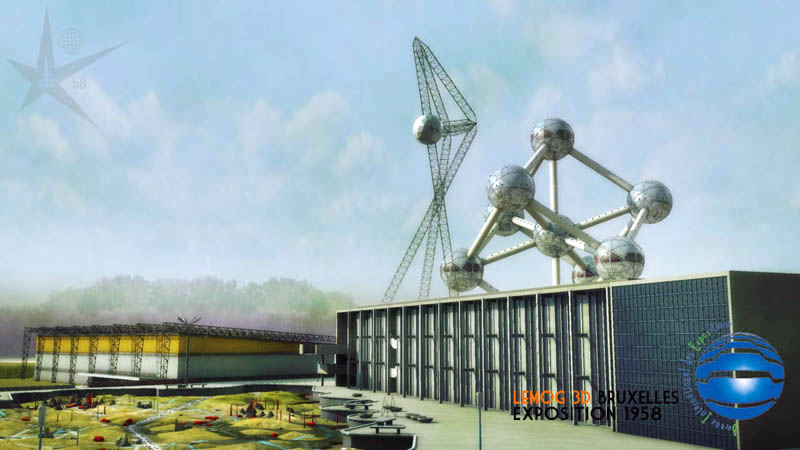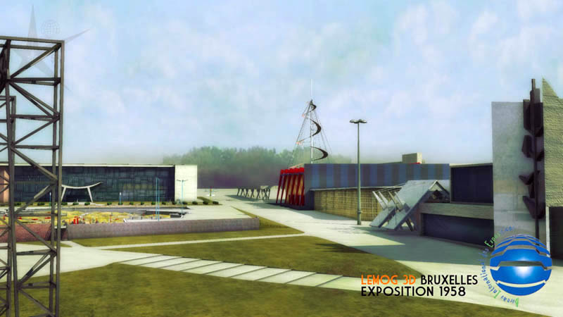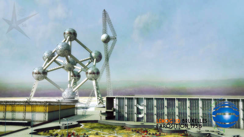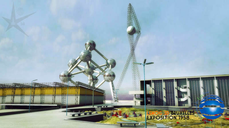 Maintenant une vue prise du pavillon des Industries Alimentaires, avec l'Atomium que beaucoup attendaient. J'espère que son rendu est convaincant pour les connaisseurs, et qu'il reste dans le ton "1958" ! ce qui est quand même le but premier.