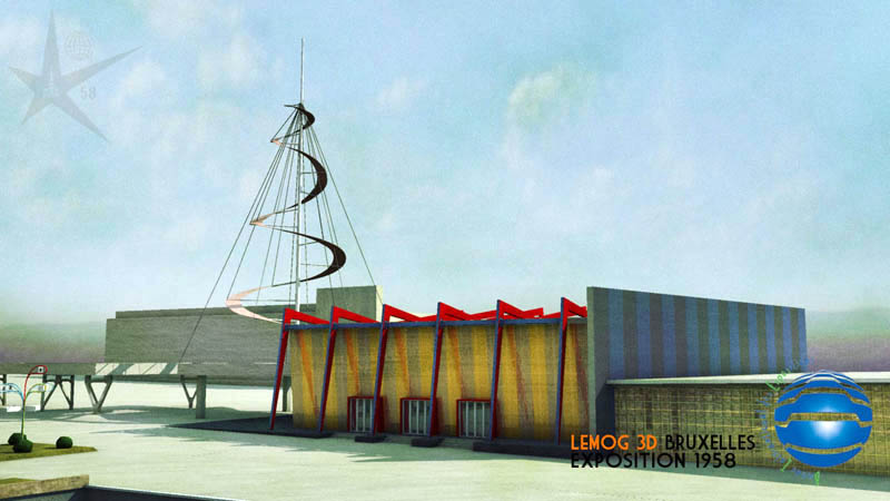 Le temps passe vite, et idéalement, il faudrait que je lance les rendus de l'animation finale dernière semaine d'août ! pas évident donc, car bien sûr, ces photos couleur de l'Expo 58, ou de cette époque, ont un aspect très particulier, que j'aimerais pouvoir retrouver ensuite dans le film 3d.