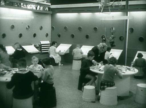 Et, basé sur une organisation rationnelle des loisirs, les visiteurs y trouvent une garderie d'enfants modèle, où toute progéniture reste entre deux absences accessible à la discrète surveillance maternelle ou paternelle.