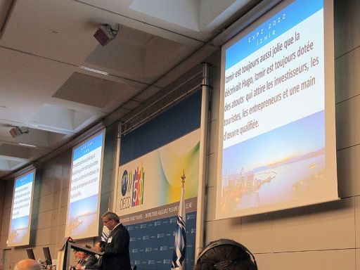 Le maire d'Izmir, M. Aziz Kocaoglu, a présenté la candidature de la Turquie qui souhaite accueillir une exposition mondiale dans la ville d'Izmir du 30 avril au 31Octobre 2020. Les principaux thèmes sont : "De nouvelles routes vers un monde meilleur / La Santé pour tous»