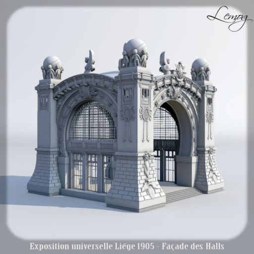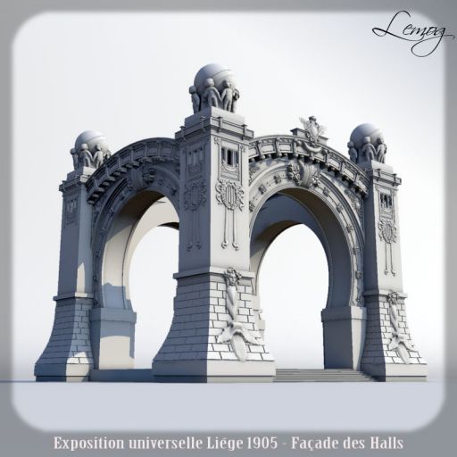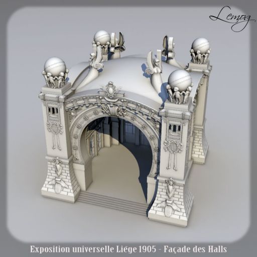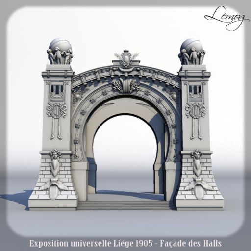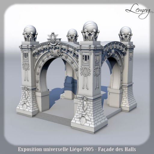 suite de la modélisation de la Porte Monumentale... un gros morceau ! qui devait être impressionnant pour les visiteurs de l'Exposition de 1905 à Liège :